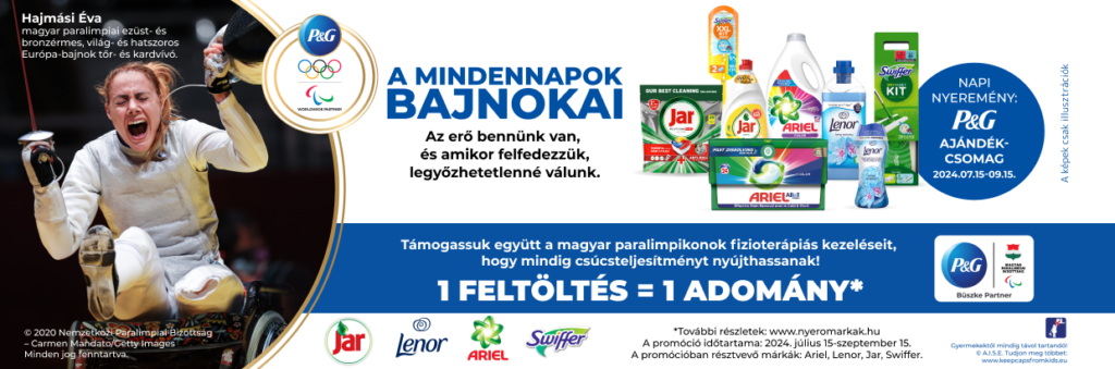 Vásárolj legalább 1 db, a promócióban megjelölt JAR, LENOR, ARIEL vagy SWIFFER terméket 2024. július 15. és szeptember 15. között és töltsd fel a vásárlást igazoló blokkot, mert minden egyes feltöltéssel te is támogatod a magyar paralimpikonok fizioterápiás kezeléseit a Magyar Paralimpiai Bizottságon keresztül. Minden nap egy szerencsés nyertest sorsolunk ki, aki egy PG termékekből álló ajándékcsomagot nyer. A nyereményjáték teljes időtartama alatt összesen 63 db csomag talál gazdára.
