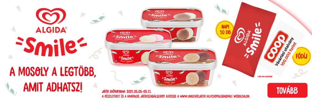 Részletek és hivatalos játékszabályzat: www.unileverjatek.hu/coopalgidasmile
