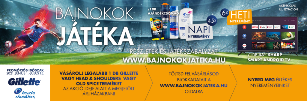 Vásárolj legalább 1 db Gillette vagy Head&Shoulders vagy Old Spice terméket a Coop üzletek valamelyikében, és töltsd fel a számlád AP-kódját a bajnokokjateka.hu weboldalra!