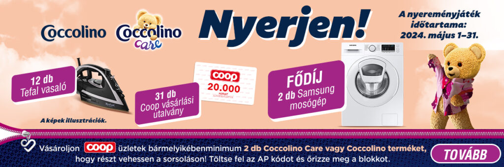 Nyereményjáték időtartama: 2024. május 1-31. Részletek: www.unileverjatek.hu/coopcoccolino