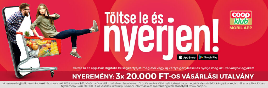 A nyereményjátékban mindenki részt vesz, aki 2024. május 01-31. között a Coop Klub alkalmazáson keresztül új törzsvásárlói kártyát igényel vagy meglévő törzsvásárlói kártyájával regisztrál az applikációban.