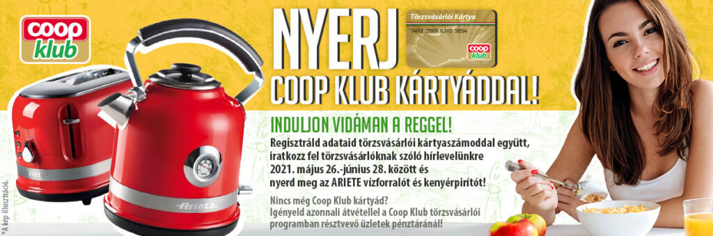 Ha már a Coop Klub tagja vagy, iratkozz fel törzsvásárlói hírlevelünkre, frissítsd adataidat és részt vehetsz sorsolásunkon, melyen most egy Ariete Moderna piros reggeliző szettet nyerhetsz! Ha még nem vagy tag, de szeretnél nyerni, akkor igényelj Coop Klub törzsvásárlói kártyát egyik üzletünkben, majd regisztrálj itt hírlevelünkért és máris esélyt kapsz a nyerésre!