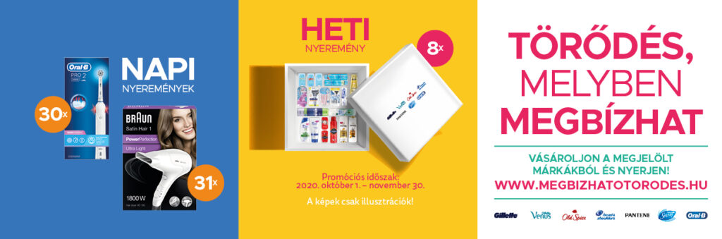 Napi nyeremények: Októberben: naponta 1 darab Braun HD 180 típusú hajszárító Novemberben: naponta 1 darab Oral-B Sensi Ultra Thin elektromos fogkefe