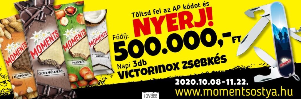 Nem kell mást tenned, csak töltsd fel a vásárlást igazoló blokkon lévő AP-kódot és a vásárlás időpontját a www.momentsostya.hu weboldalra. Ha szerencsés vagy, akkor megnyerheted a napi nyeremények egyikét, egy szuper, 12 funkciós Moments Victorinox zsebkést, vagy akár a fődíjat, az 500 000 Ft készpénzt!