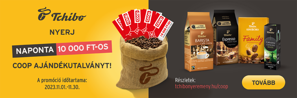Vásárolj bármilyen Tchibo kávét a Coop üzleteiben, regisztrálj, töltsd fel a vásárlást igazoló blokk adatait és nyerj!