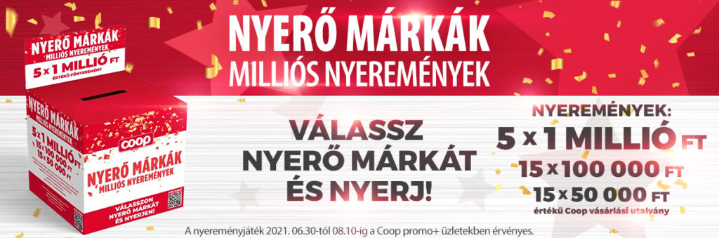 A nyereményjáték 2021.06.30-tól 08.10-ig a Coop promo+ üzletekben érvényes.