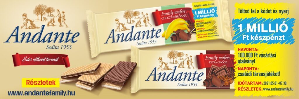 A nyereményjáték időtartama: 2021. 05. 01. – 2021. 07. 30. Részletek, játékszabályzat, regisztráció: https://andantefamily.hu/