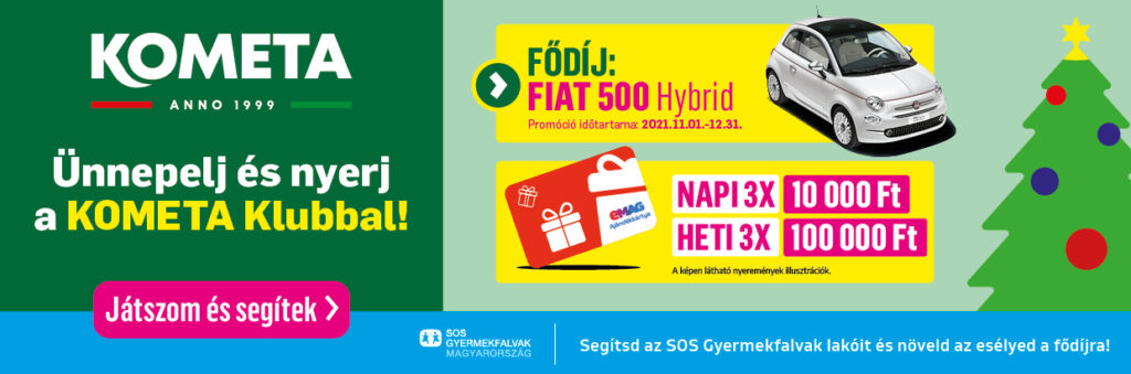 Az „Ünnepelj a KOMETA Klubbal!” nyereményjáték 2021. november 1. 00:00 órától 2021. december 31. 23:59 óráig tart. Regisztráció, kódbeküldés és további részletek: klub.kometa.hu